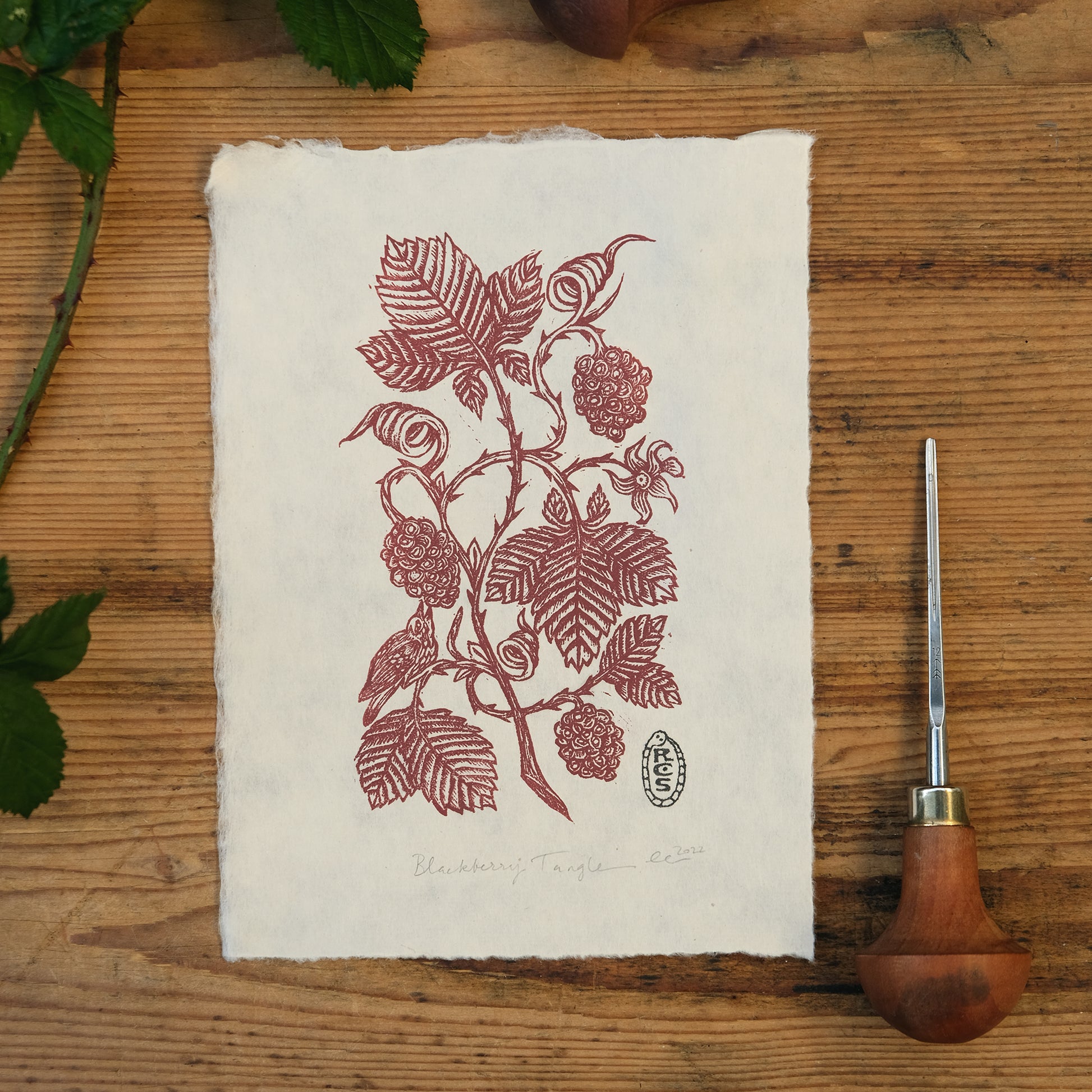 Blackberry Tangle - Lino Print