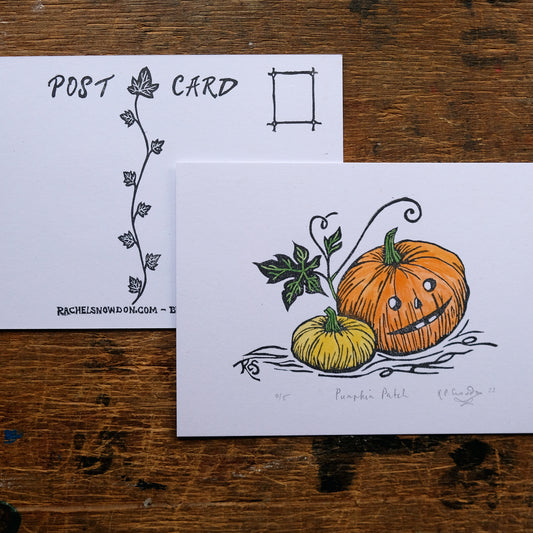 Halloween Pumpkin Postcard Print - Hand Painted Linocut