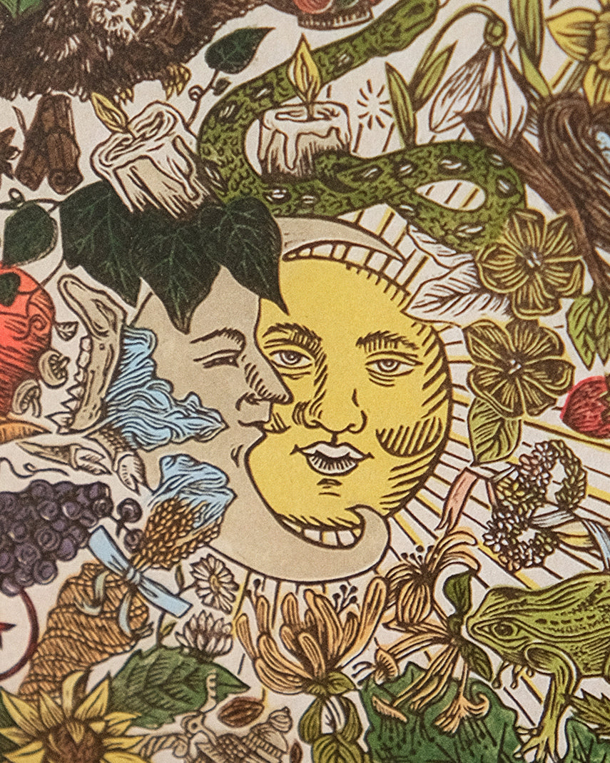 A digitally-printed greetings card with a design taken from my original lino-print illustration, the magical 'Wheel of The Year'. Designed and printed in the UK. FSC-Certified.
